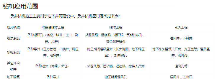 反井钻机适用于硬度为f3至f12的各种岩石,甚至可以定制特制扩孔器来应对特硬岩石f12(抗压强度200kg/cm2)。其钻孔作业不受孔径、深度和斜度的限制,施工潜能巨大,安全系数高,是建井工程中的理想选择。